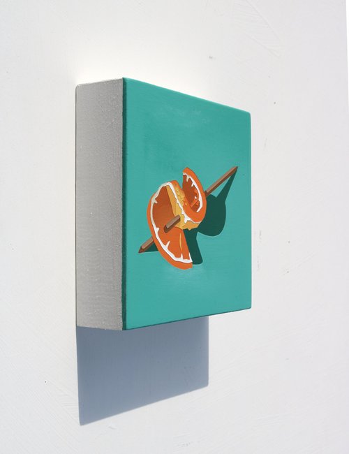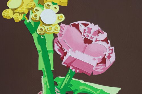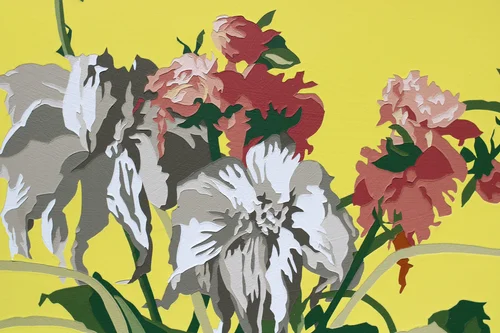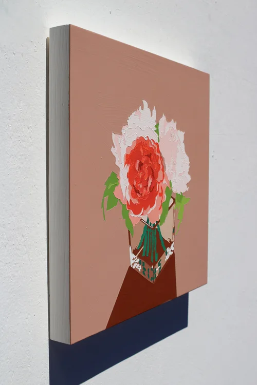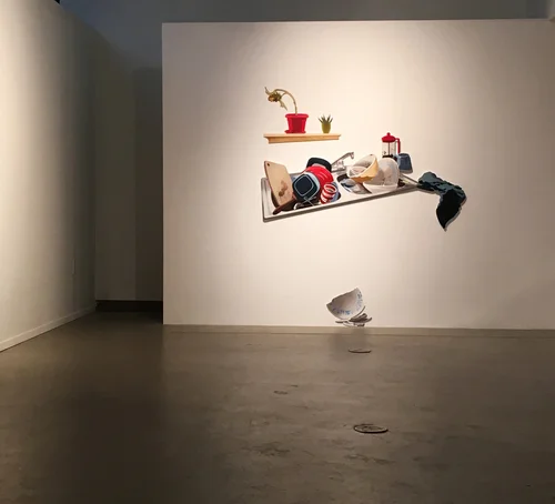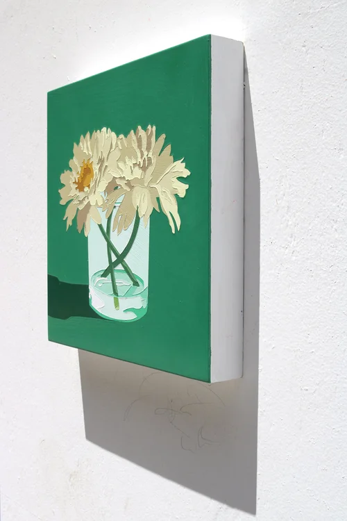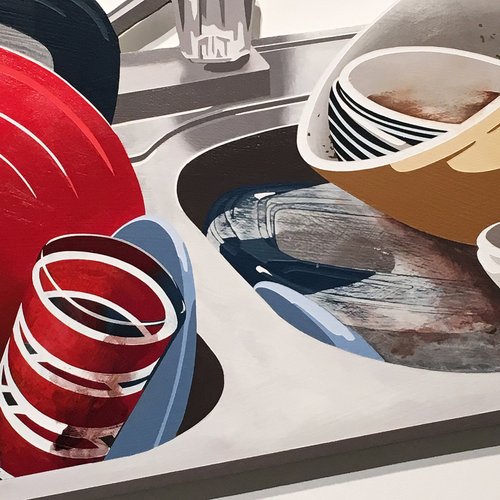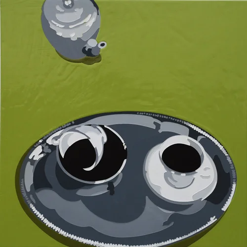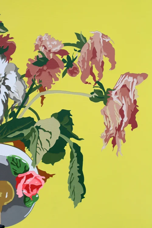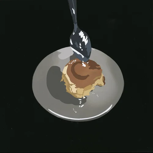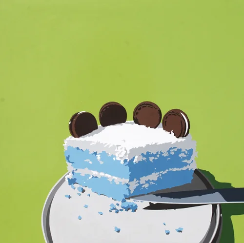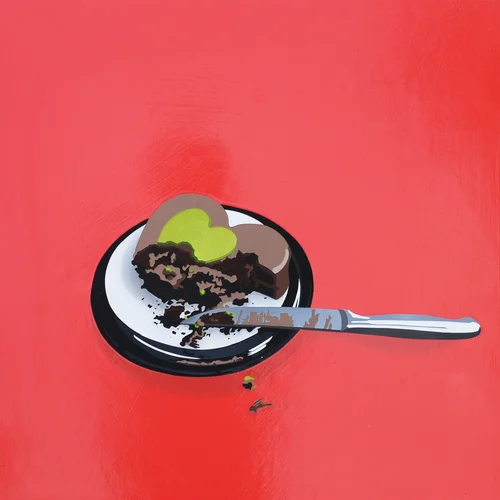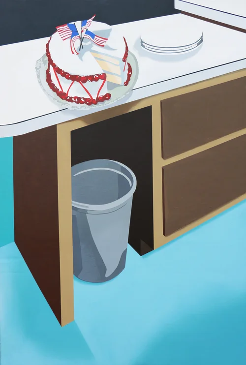 For her laboriously painted panels, Larusso uses masking tape, precisely shaped and cut, to create sharply detailed paintings with distinct areas of color. She highlights an object's three-dimensionality while accentuating the fact that it is, ultimately, an image. Through vignettes that flow from one to the next, Larusso explores the tension between gratitude and waste, need and gluttony, festivity and finality.